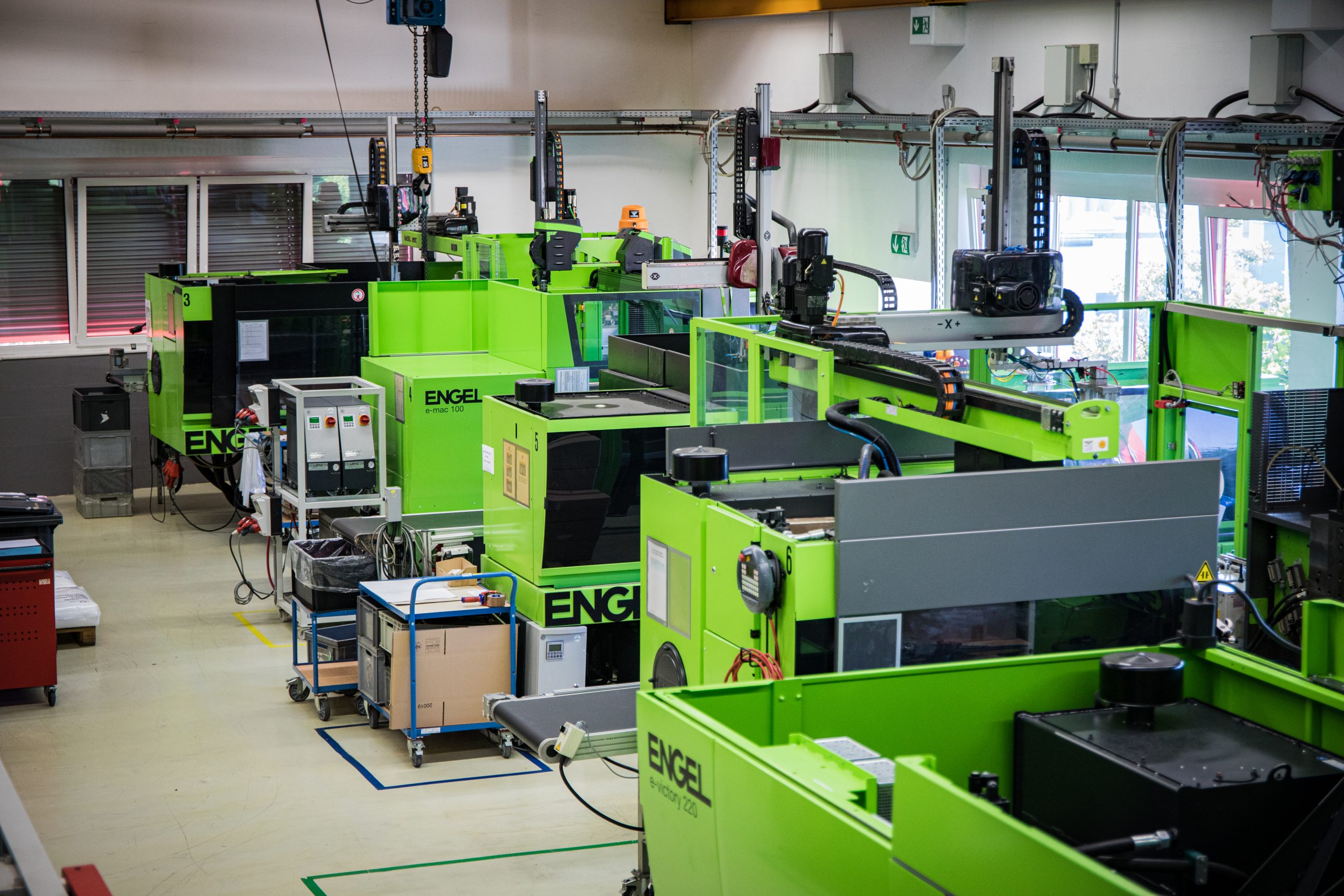 BIn unserer Spritzgießabteilung stehen Ihnen modernste Maschinen mit Schließkräften von 30 bis zu 275 Tonnen für Ein- oder Mehrkomponentenartikel zur Verfügung.